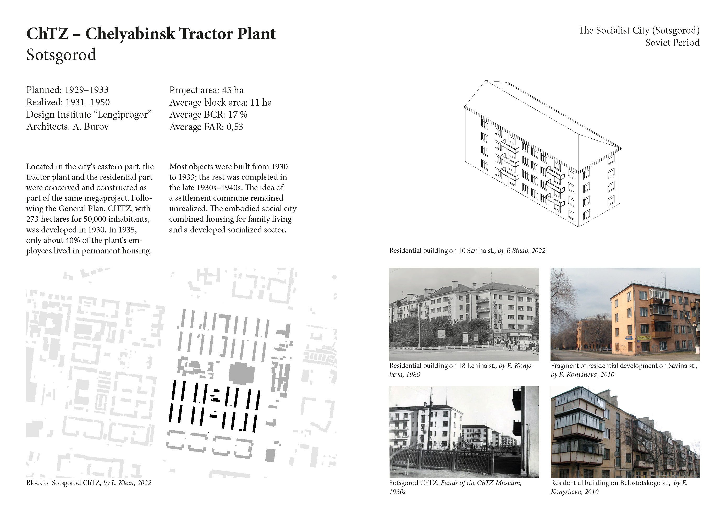 Appearing as an idea in the post-revolutionary period, the socialist city has already emerged outside of private land ownership. One of this morphotype's critical difficulties and contradictions lies in the vast difference between socialist cities as an idea and a socialist city as an implementation. Conceived as an ideal planned city for workers, it was never realized in this vein. On the one hand, the calculations of the population did not keep pace with reality, and the plan quickly became outdated. On the other hand, the provision of regular housing, according to Khmelnitsky D., was not at all included in the plans of the Soviet state during this period. Hence, many of the socialist cities consisted of barracks and dugouts. And only a tiny part of the quarters was made of stone.